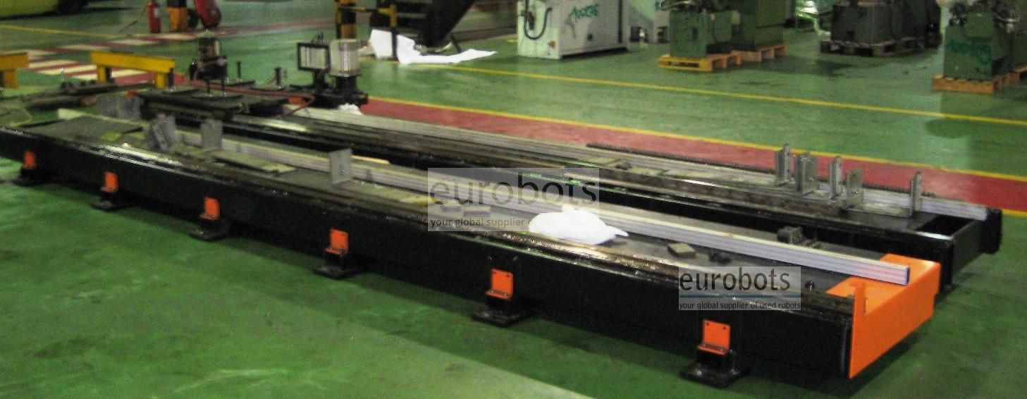 Robot industrial IRB6640 del año 2008, consta de un sistema de 7 ejes compuesto por un robot industrial 6 ejes (versión Foundry Plus para ambientes más sucios y exigentes (protección IP65) de 180 kg de carga y 2500 mm alcance montado sobre una unidad lineal track de 5 metros de longitud adecuado para labores de manipulación y mecanizado.